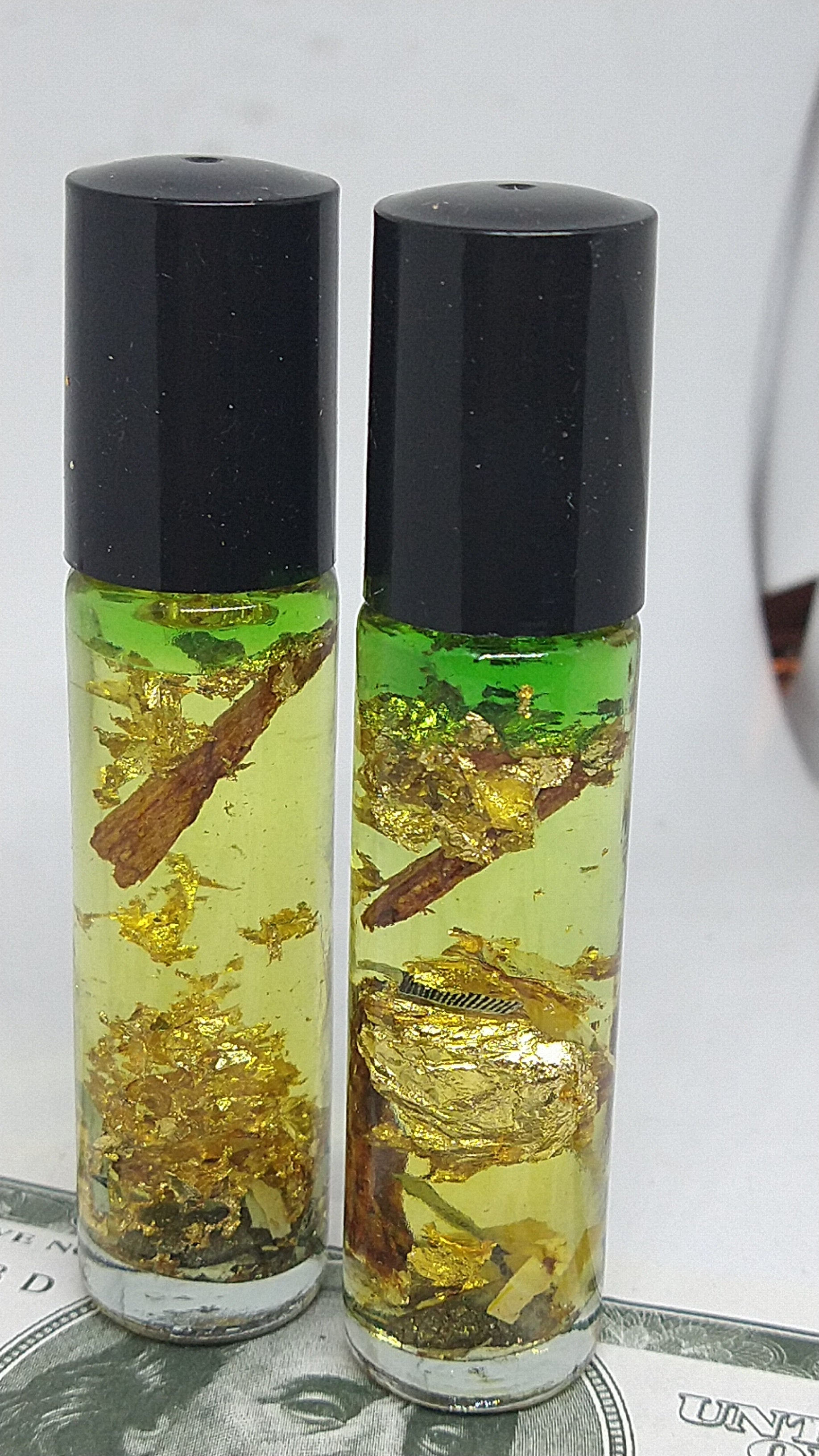 Fablane Jewels most requested Billionaire Money attraction oil is restocked. Our money oil is infused with a magical punch! Pyrite dust, 14kt gold flakes, cinnamon and US Federal Reserve shredded money , prepared with positive abundance intentions by the Boss Healer herself. This oil can be worn as a perfume to smell like a billion bucks or can be used to annoint candles , cash, debit cards and spiritual tools for ritual.