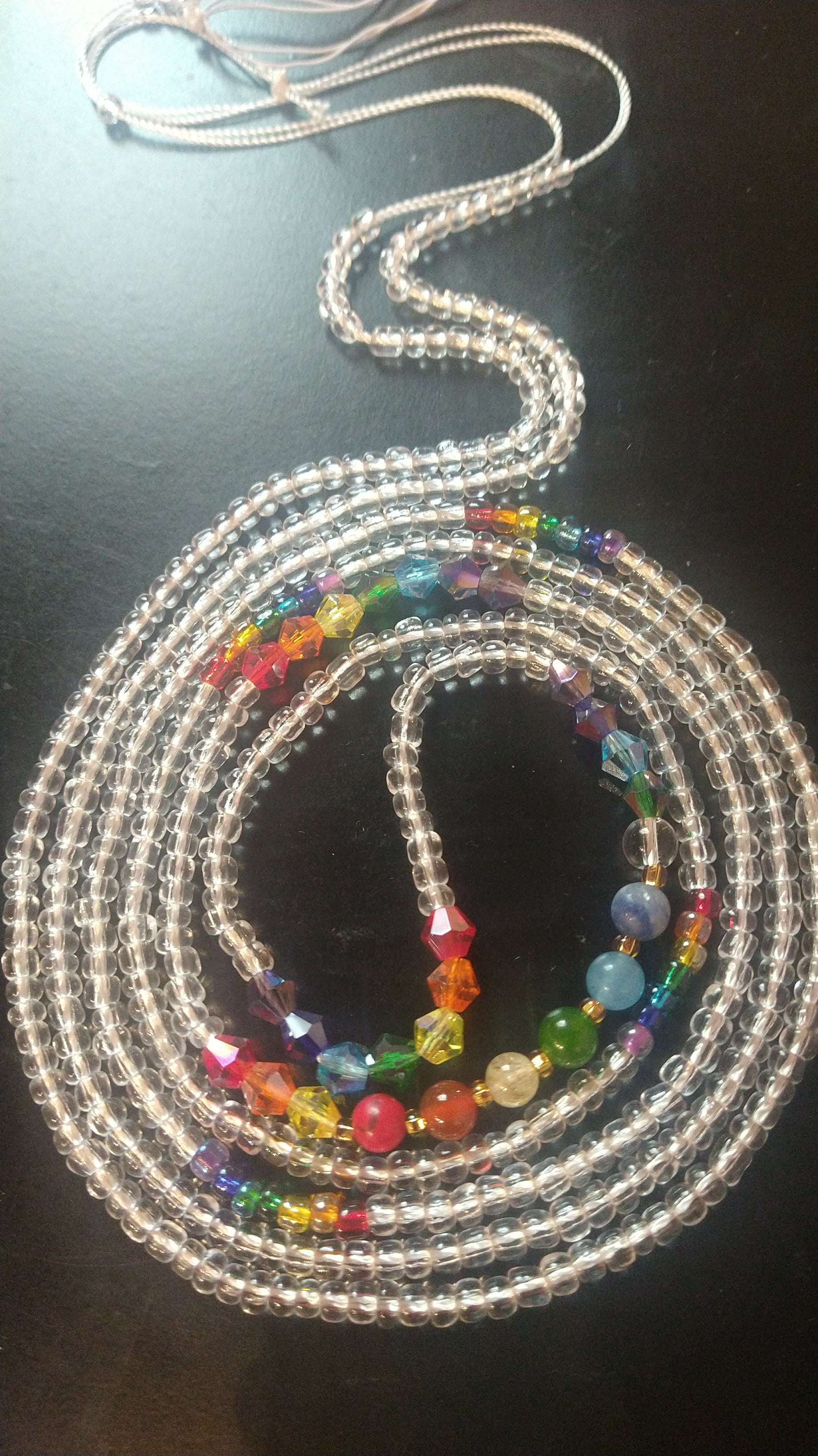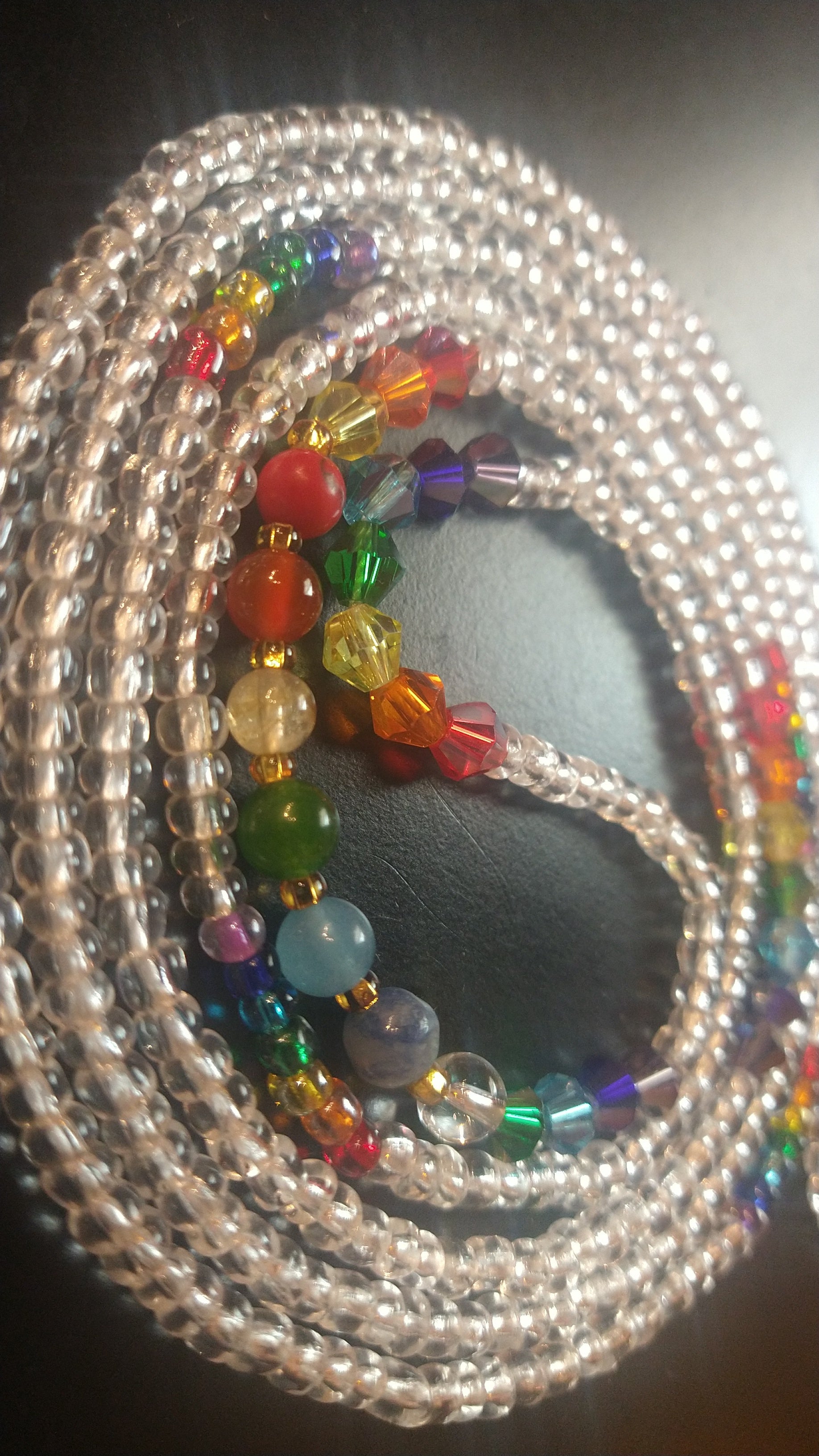 Align your energy and embrace your divine power with our Chakra Balancing Waistbeads. Handcrafted with clear glass seed beads, this beautiful strand features all seven chakra stones — Red Jasper, Carnelian, Citrine, Green Aventurine, Sodalite, Amethyst, and Clear Quartz — each chosen to harmonize and restore balance to your mind, body, and spirit.