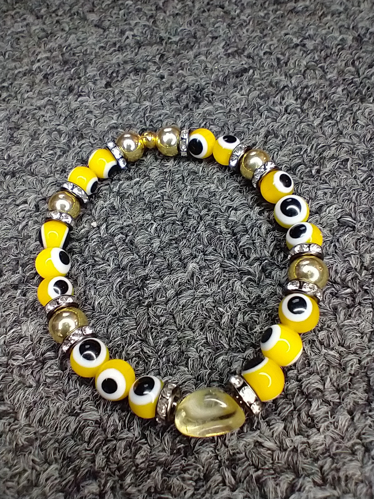 Evil Eye Bracelet with Gold hematite and citrine stones, this protective bracelet helps release feelings of anger/negativity and is a great emotional balancer. This bracelet will help strengthen self esteem and it will bring a positive flow of energy to life. While gold hematite is grounding and protective.